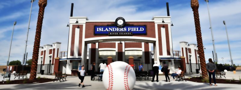 The stadium is a privately-operated baseball facility located in the Town Center of the River Islands Master Planned community in Lathrop, California. The field is 390 feet in center field, and both foul lines are 330 feet. Stadium seating capacity is approximately 500. Lights, public restrooms, a scoreboard, public address systems, and batting cages are included. All game necessities must be provided by the renter. Bases will be provided by River Islands Baseball LLC. Paved parking is provided and included in this facility.